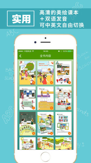 5.“聽課文”讓你的孩子隨時(shí)收聽純正美式教材,完全與教材同步。