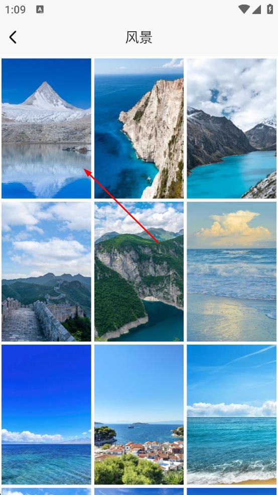 2、在風(fēng)景壁紙列表中,瀏覽多張風(fēng)景圖,選擇心儀的雪山湖泊風(fēng)景壁紙,點(diǎn)擊查看詳情。