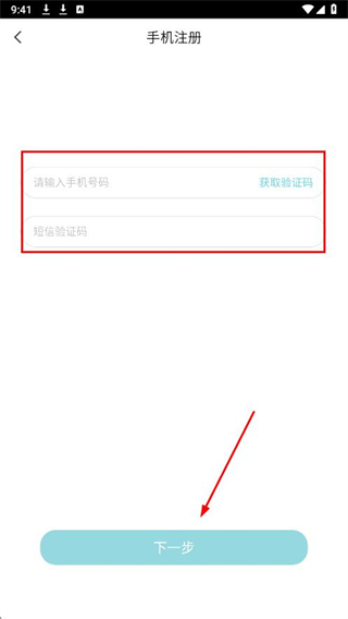 2、在手機(jī)注冊(cè)頁(yè)面,輸入手機(jī)號(hào)碼,填入短信驗(yàn)證碼,點(diǎn)擊下一步。