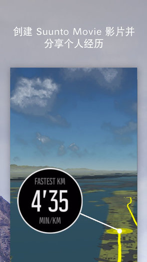 利用為個(gè)人訓(xùn)練制作的獨(dú)特Suunto Movie影片,將個(gè)人Move分享到Facebook和Twitter,影片包含融入個(gè)人照片的細(xì)致三維地圖。添加感覺(jué)和描述,個(gè)性化每項(xiàng)訓(xùn)練活動(dòng),使其成為難忘回憶。