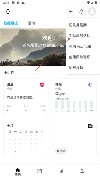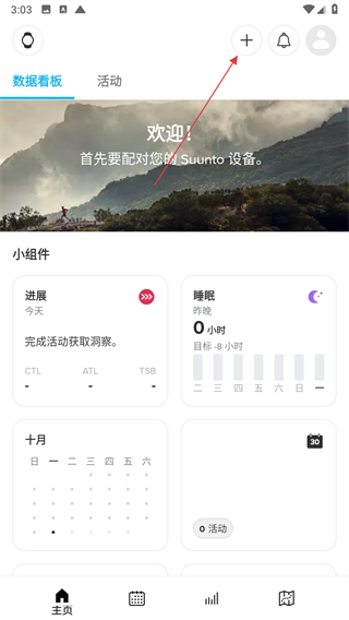 1、打開(kāi)Suunto頌拓應(yīng)用,點(diǎn)擊頁(yè)面右上角的+號(hào)按鈕。