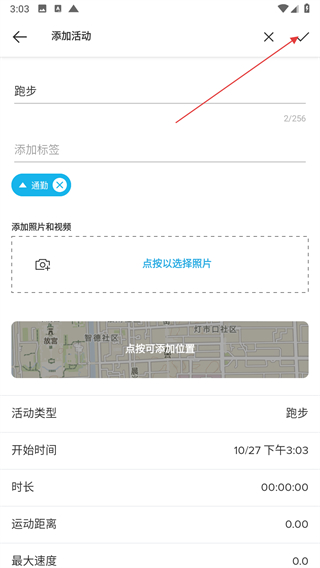 3、填寫活動(dòng)相關(guān)信息,然后點(diǎn)擊頁(yè)面右上角的對(duì)勾按鈕。