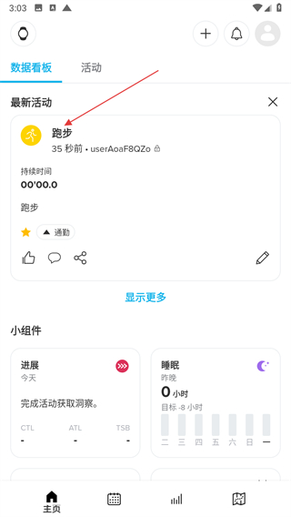 4、添加完成后,可在主頁(yè)的最新活動(dòng)區(qū)域查看該活動(dòng)。