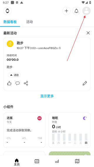 1、打開(kāi)SUUNTO頌拓APP,點(diǎn)擊右上角個(gè)人頭像圖標(biāo)。