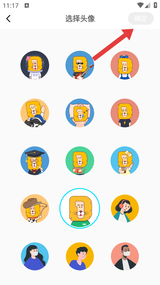 4、在選擇頭像頁面,選擇喜歡的頭像后點擊確定,完成頭像修改。