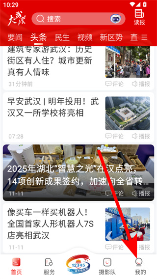 1、在大武漢app首頁(yè),點(diǎn)擊右下角我的選項(xiàng),進(jìn)入個(gè)人中心頁(yè)。