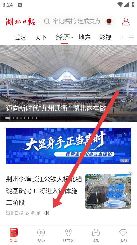 1、打開湖北日報(bào)APP,在新聞的頁面中,找到帶有音量標(biāo)識的新聞報(bào)道,點(diǎn)擊該新聞。