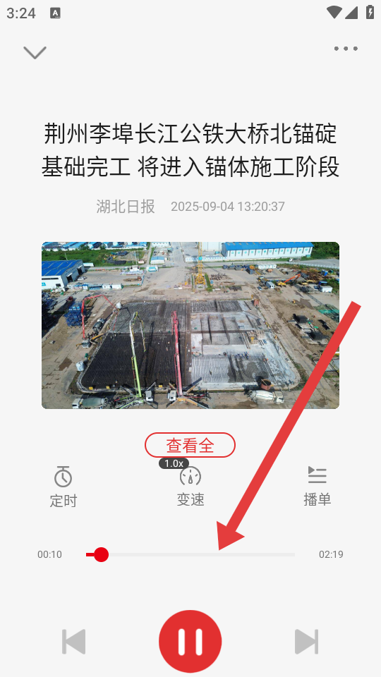 3、在播放界面可以查看新聞內(nèi)容,還能調(diào)節(jié)播放進(jìn)度、設(shè)置定時(shí)或變速等,從而聆聽新聞報(bào)道。