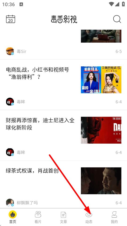 1、打開毒舌影視APP,點(diǎn)擊底部導(dǎo)航欄動態(tài),進(jìn)入動態(tài)頁面。