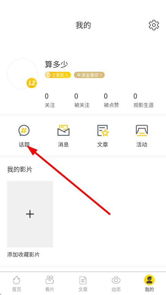 4、若要查看發(fā)布的話題,點(diǎn)擊底部我的,進(jìn)入個人頁面后,點(diǎn)擊話題。