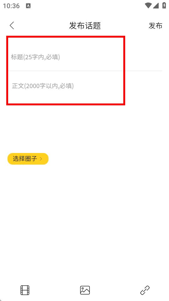 3、在發(fā)布話題界面,填寫25字內(nèi)的標(biāo)題和2000字以內(nèi)的正文,最后點(diǎn)擊發(fā)布。