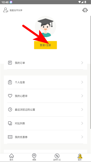 2、在個(gè)人中心頁面,點(diǎn)擊登錄/注冊按鈕,進(jìn)入登錄注冊界面。