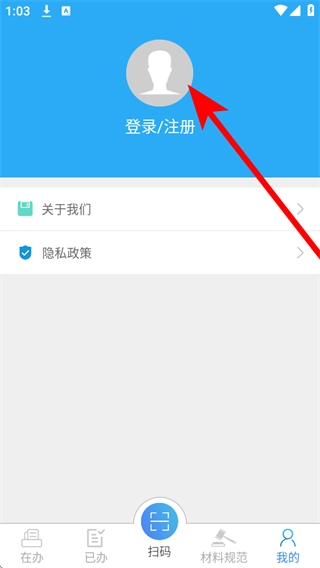 1、打開河南掌上登記APP,點擊底部導(dǎo)航欄的我的,進入個人頁面。