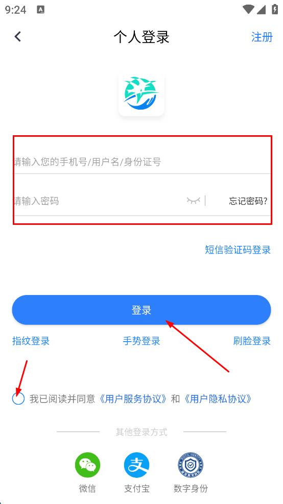 4、在個(gè)人登錄頁(yè)面,勾選已閱讀并同意相關(guān)協(xié)議,輸入手機(jī)號(hào)、密碼,點(diǎn)擊登錄即可。