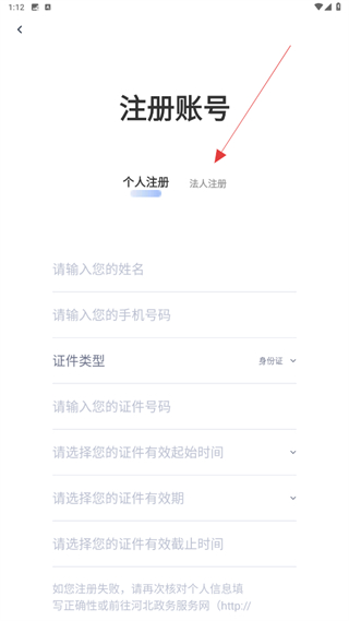 3、在登錄選擇界面,點(diǎn)擊個(gè)人登錄,進(jìn)入個(gè)人登錄頁(yè)面。