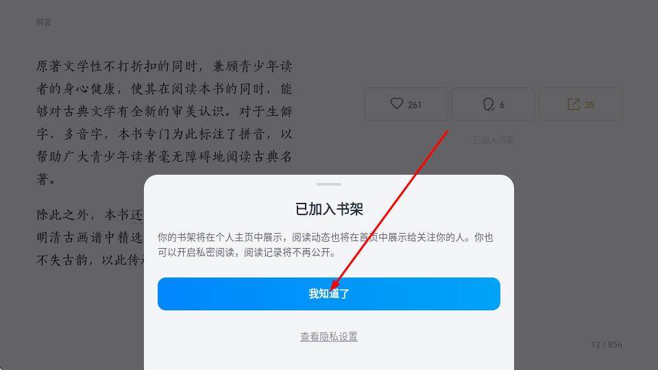 1、打開微信讀書APP進(jìn)入書籍閱讀界面,找到想要緩存的書籍,如閱讀頁面中的書籍,點(diǎn)擊屏幕中間喚起閱讀工具欄。