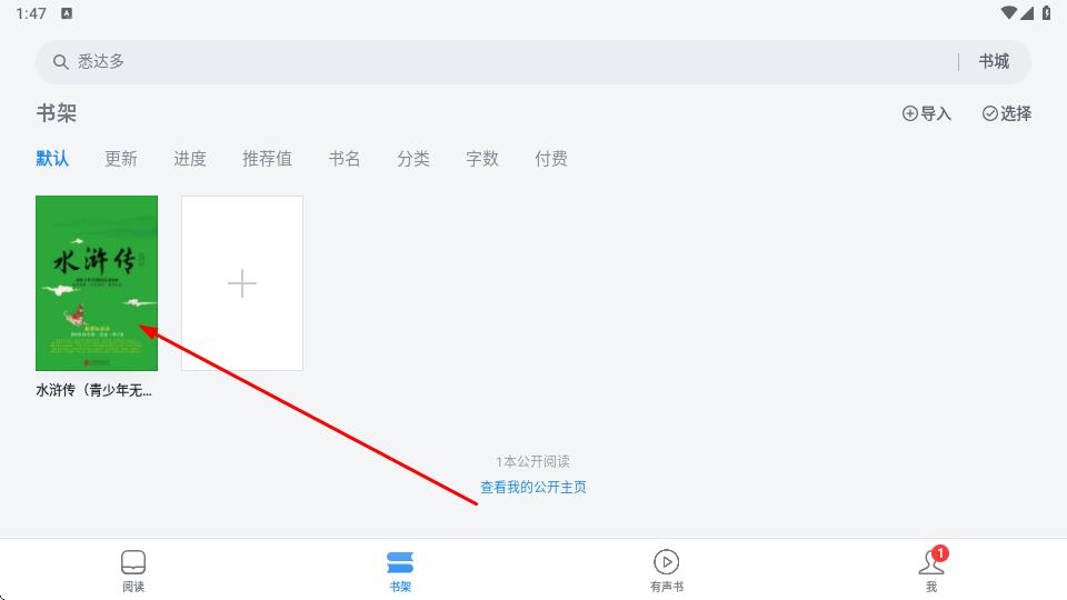 3、點(diǎn)擊【書架】圖標(biāo)進(jìn)入書架界面,緩存完成后,書籍封面下方會(huì)顯示已下載標(biāo)識(shí),此時(shí)即便處于無網(wǎng)絡(luò)狀態(tài),點(diǎn)擊書籍封面也能進(jìn)行離線閱讀。