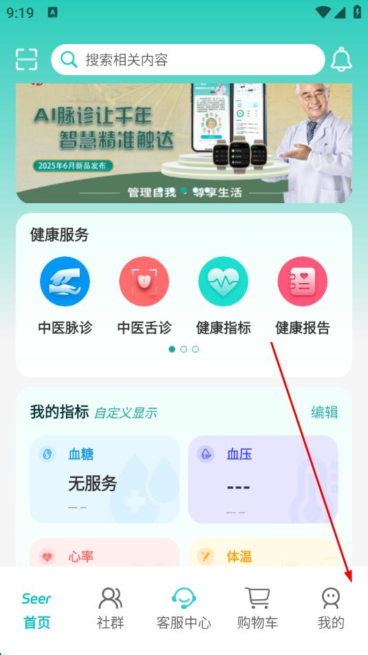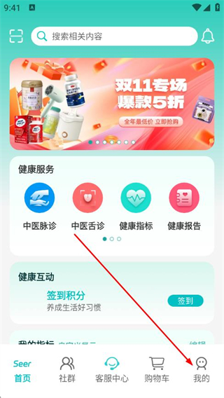 1、打開思爾健康應(yīng)用,點(diǎn)擊底部導(dǎo)航欄中的我的選項(xiàng)。