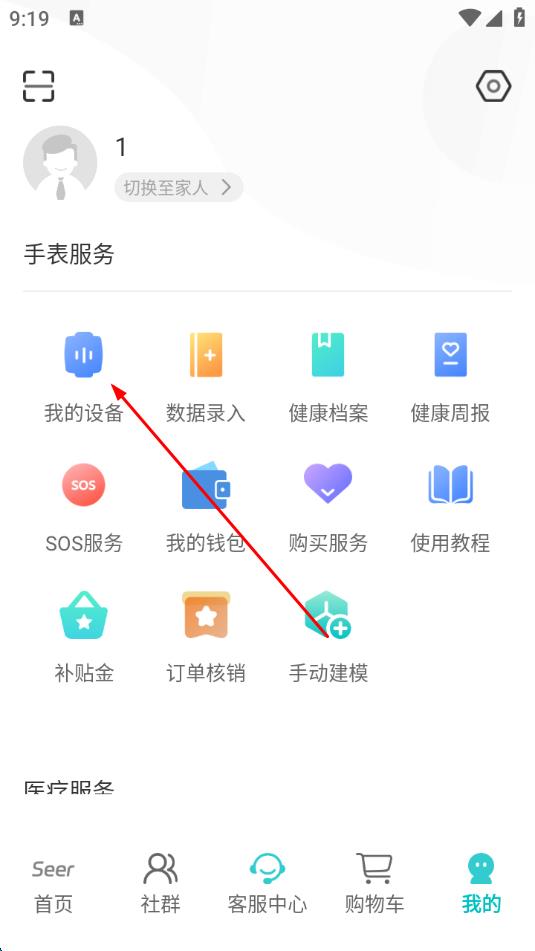 2、在“我的”頁面中,找到并點(diǎn)擊我的設(shè)備選項(xiàng)。