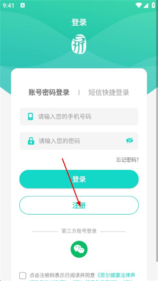 2、在登錄頁面點(diǎn)擊注冊,進(jìn)入注冊信息填寫頁面。