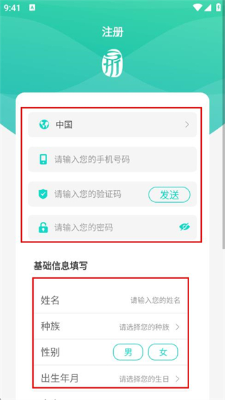 3、在注冊信息填寫頁面,輸入基礎(chǔ)信息。