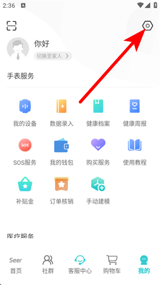 1、打開思爾健康A(chǔ)PP,點(diǎn)擊右下角我的,進(jìn)入個(gè)人的頁面。