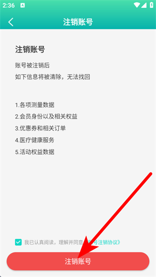 4、勾選同意協(xié)議后,點(diǎn)擊注銷賬號(hào),完成賬號(hào)注銷操作。