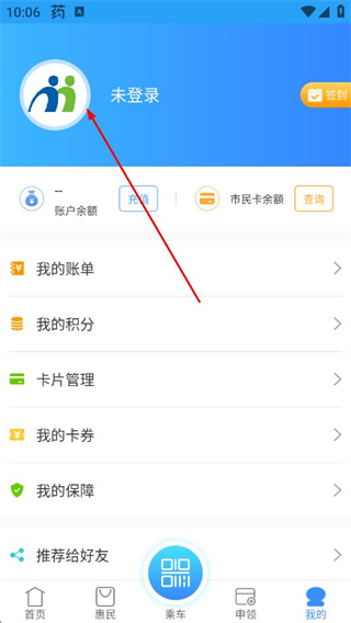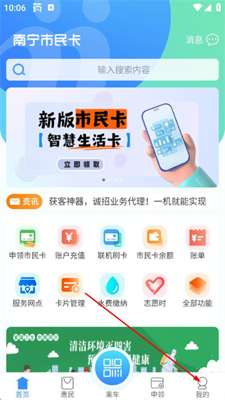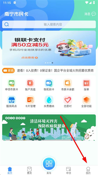 1、打開南寧市民卡app,點擊底部導航欄的我的選項進入個人頁面。