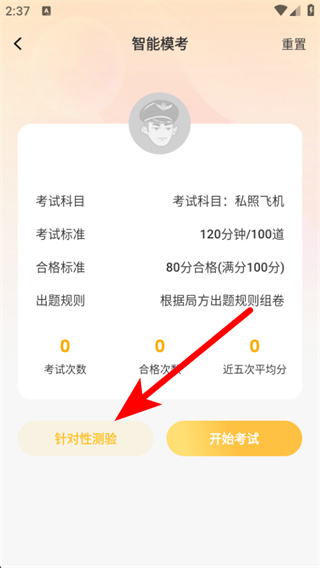 2、在智能??柬?yè)面,點(diǎn)擊針對(duì)性測(cè)驗(yàn),進(jìn)入針對(duì)性測(cè)驗(yàn)設(shè)置頁(yè)面。