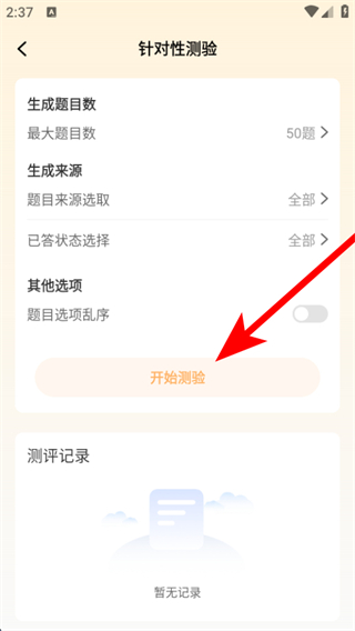 3、在針對(duì)性測(cè)驗(yàn)設(shè)置頁(yè)面,點(diǎn)擊開(kāi)始測(cè)驗(yàn),進(jìn)入小考答題頁(yè)面。