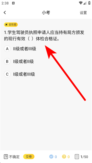 4、在小考答題的頁(yè)面,即可開(kāi)始解答題目,完成答題的操作。