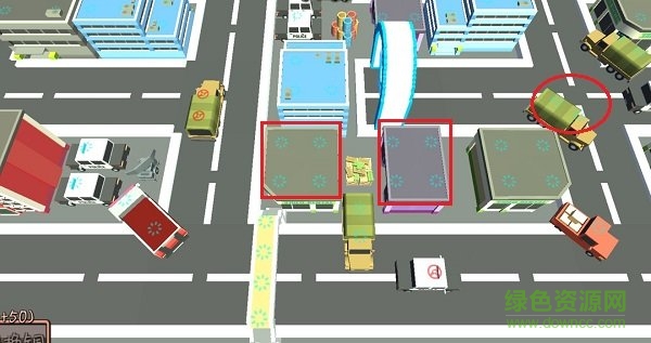如圖所示,以建筑為單位,上面的4個(gè)光標(biāo)代表其為4位,車上兩個(gè)光標(biāo)代表其為2位等。