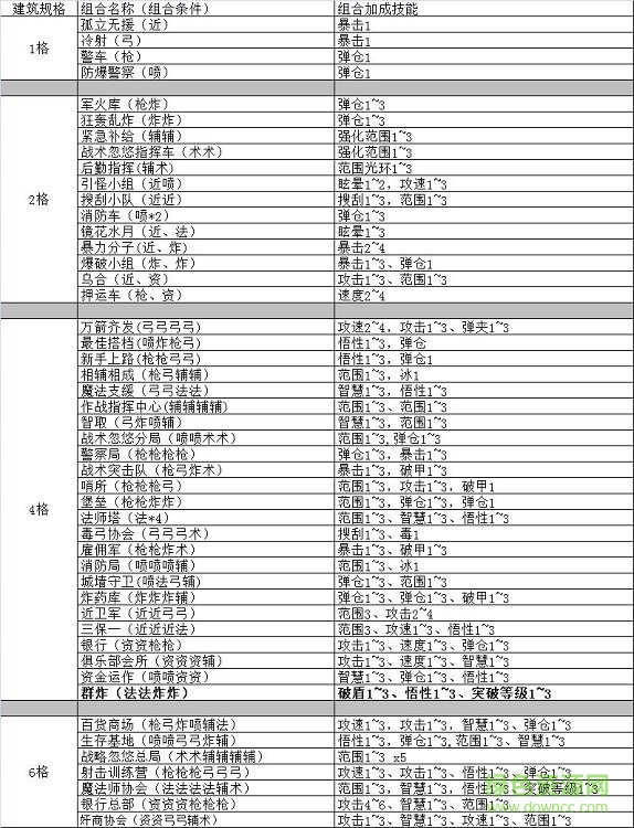 而組合,就是將該建筑的位置全部放滿后形成的組合,意思是這個(gè)樓有4個(gè)位置可以放防御塔的話,必須把這四個(gè)位置都放上防御塔,才能有組合光環(huán)。