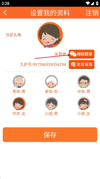 3、在設(shè)置我的資料頁(yè)面,可選擇對(duì)應(yīng)頭像樣式,點(diǎn)擊微信登錄完成賬號(hào)登錄。