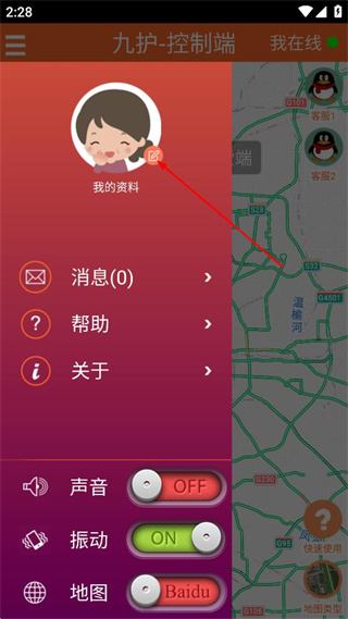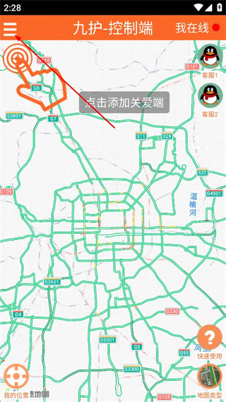1、打開(kāi)九護(hù)-控制端軟件進(jìn)入主界面,點(diǎn)擊左上角的菜單選項(xiàng),展開(kāi)功能列表。