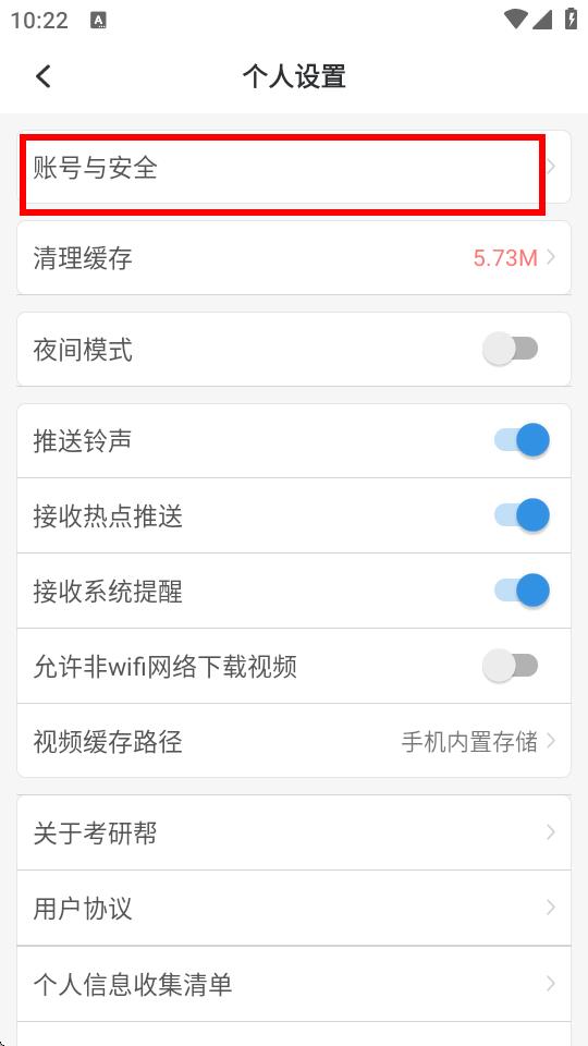 3、在個人設(shè)置界面中,點擊賬號與安全選項。