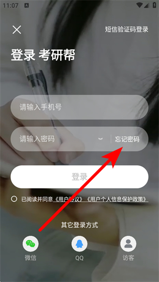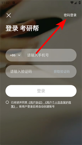 1、打開考研幫,點擊密碼登錄,切換至密碼登錄界面。