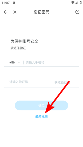 2、在密碼登錄頁點擊忘記密碼,進入密碼找回選擇頁面。
