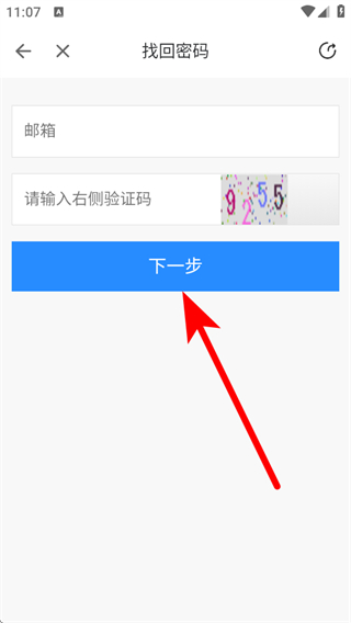 4、輸入郵箱和驗證碼后點擊下一步,完成郵箱找回密碼操作。
