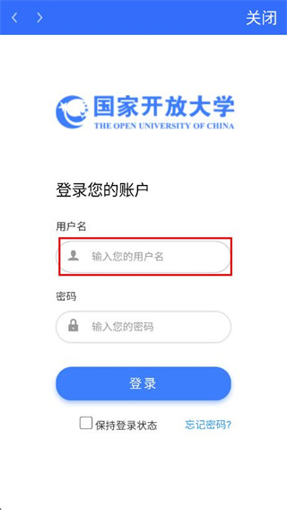 3、進入登錄頁面,點擊輸入框,填寫用戶名。
