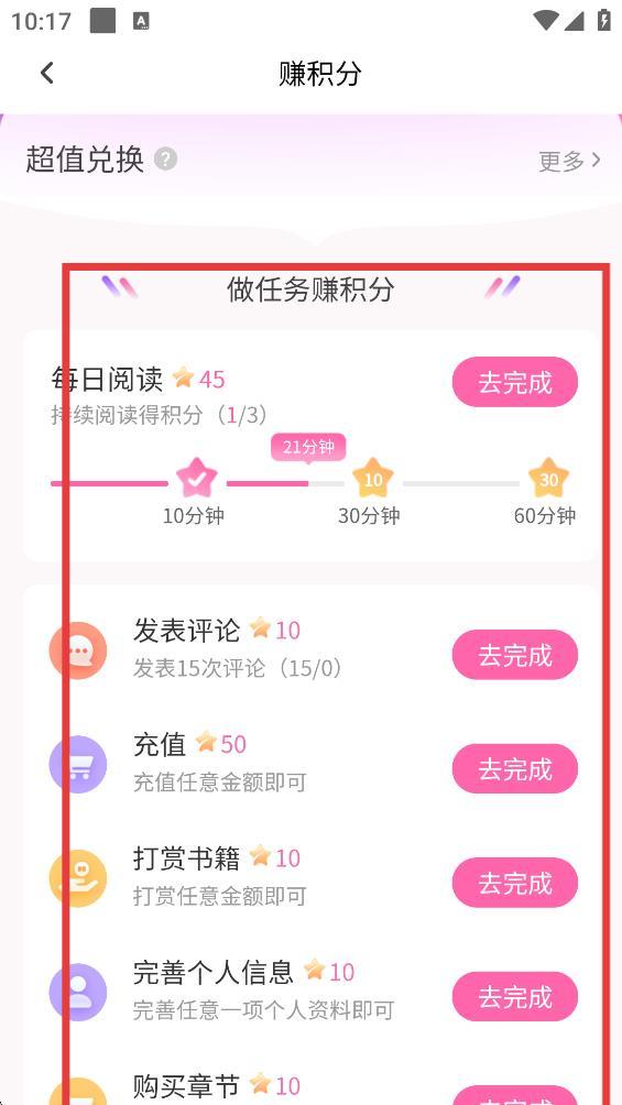 2、在積分獲取相關(guān)界面,可以看到完成特定閱讀任務(wù)能獲得積分