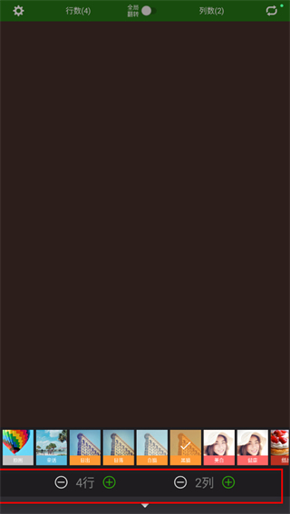 2、在圖片選擇欄中選擇圖片后,可通過調(diào)整行數(shù)和列數(shù)來設置圖片的排版布局。