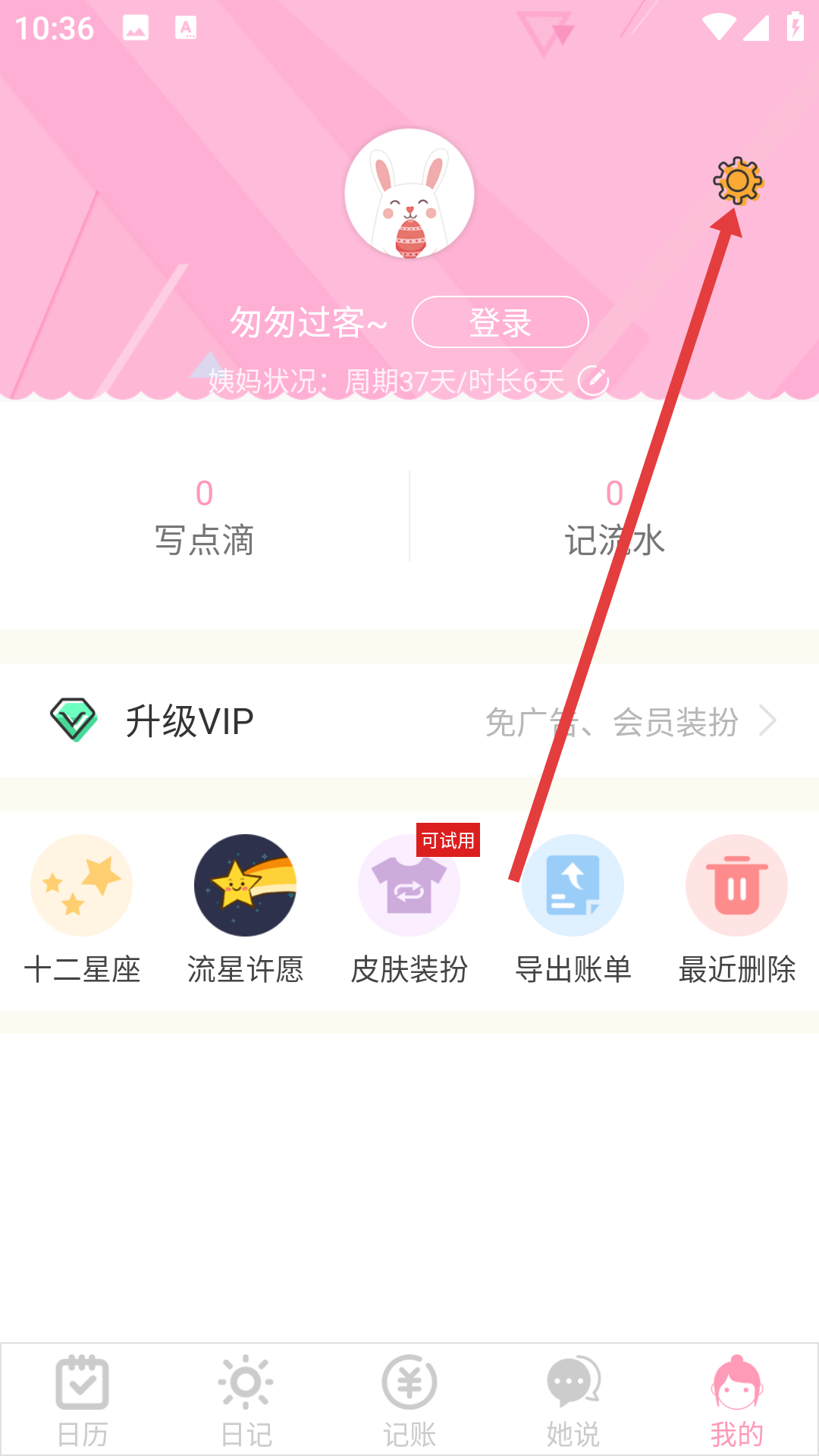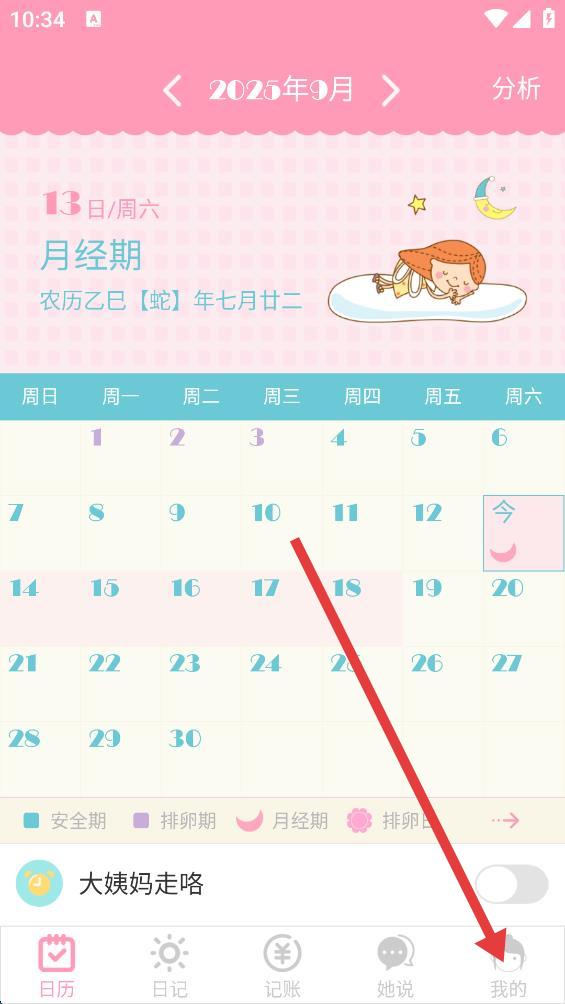 1、打開女生日歷APP,點擊底部導航欄我的,進入個人頁面。