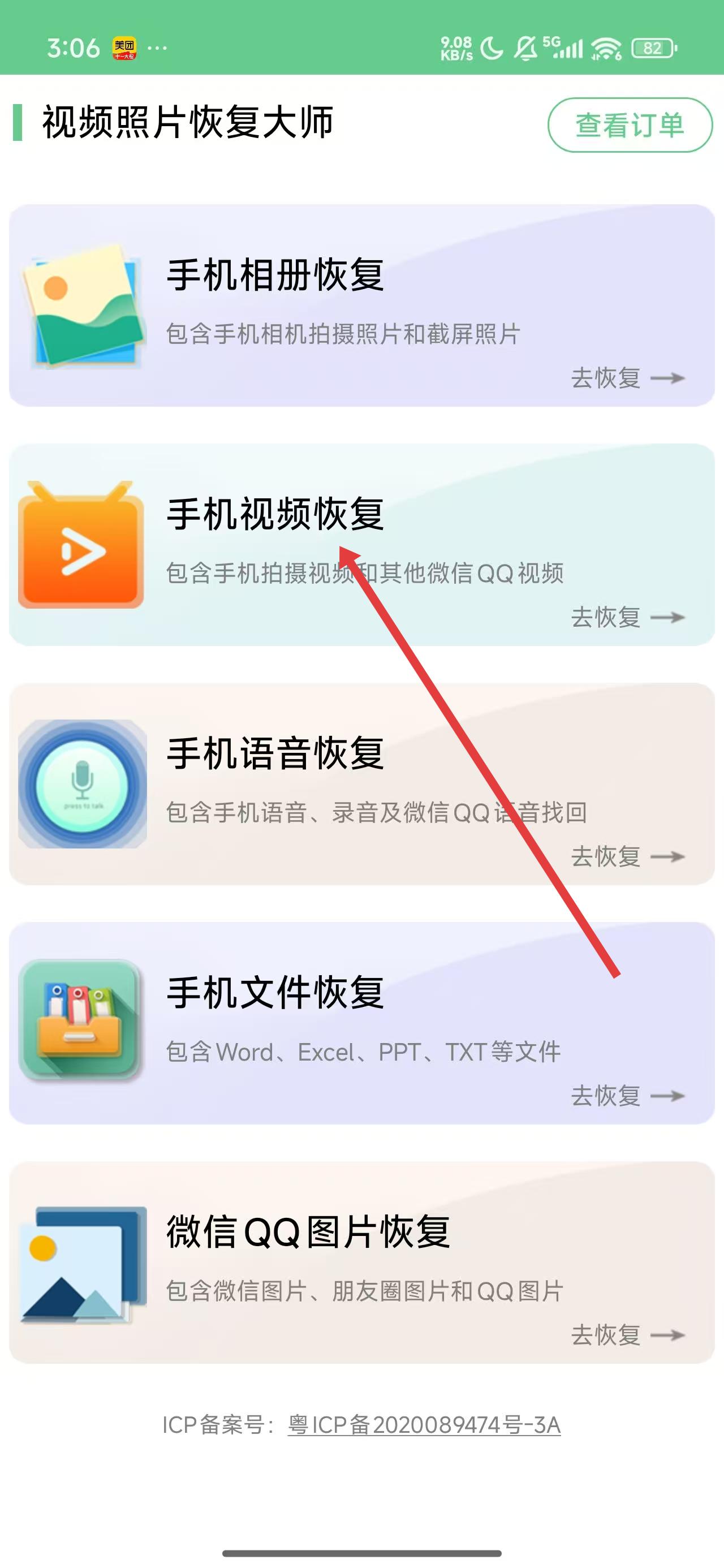 1、在進入到應用首頁中,可以點擊手機視頻恢復功能,進行恢復視頻的操作。