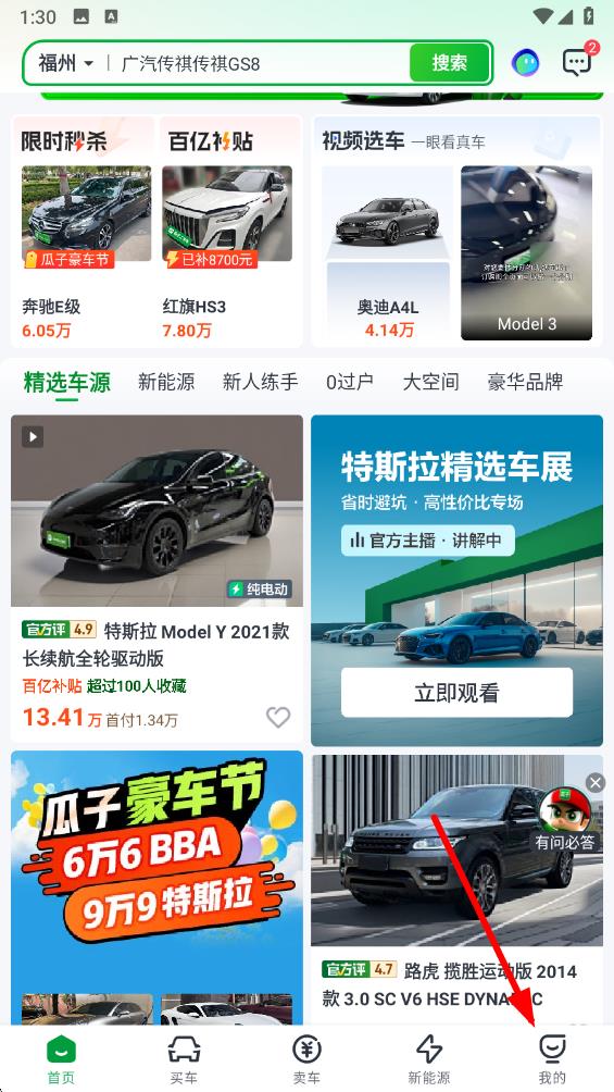 1、打開瓜子二手車APP,點擊底部導航欄的我的,進入個人頁面。