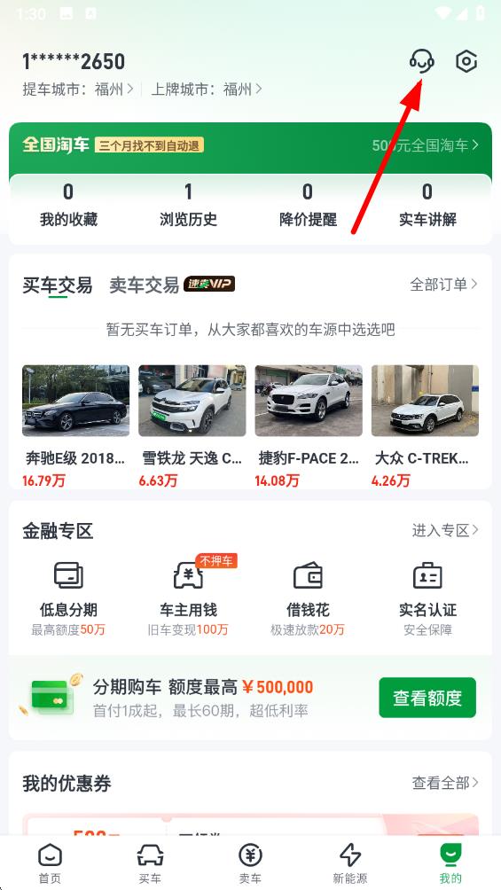 2、在個人界面右上角,點擊客服圖標,進入客服服務頁面。