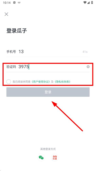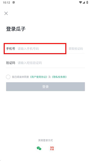 2、在登錄頁面,點擊手機號輸入框,輸入手機號。