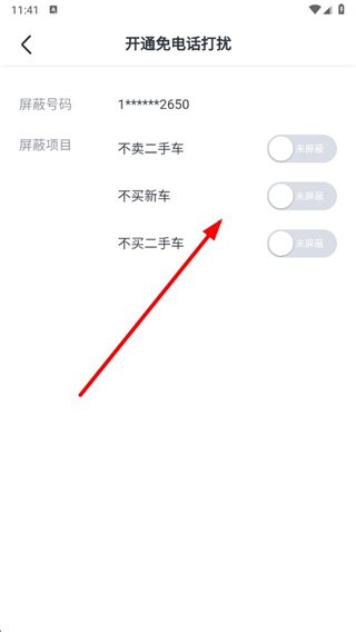 4、在開通免電話打擾頁面,可根據需求選擇屏蔽項目,開啟對應的免打擾設置。