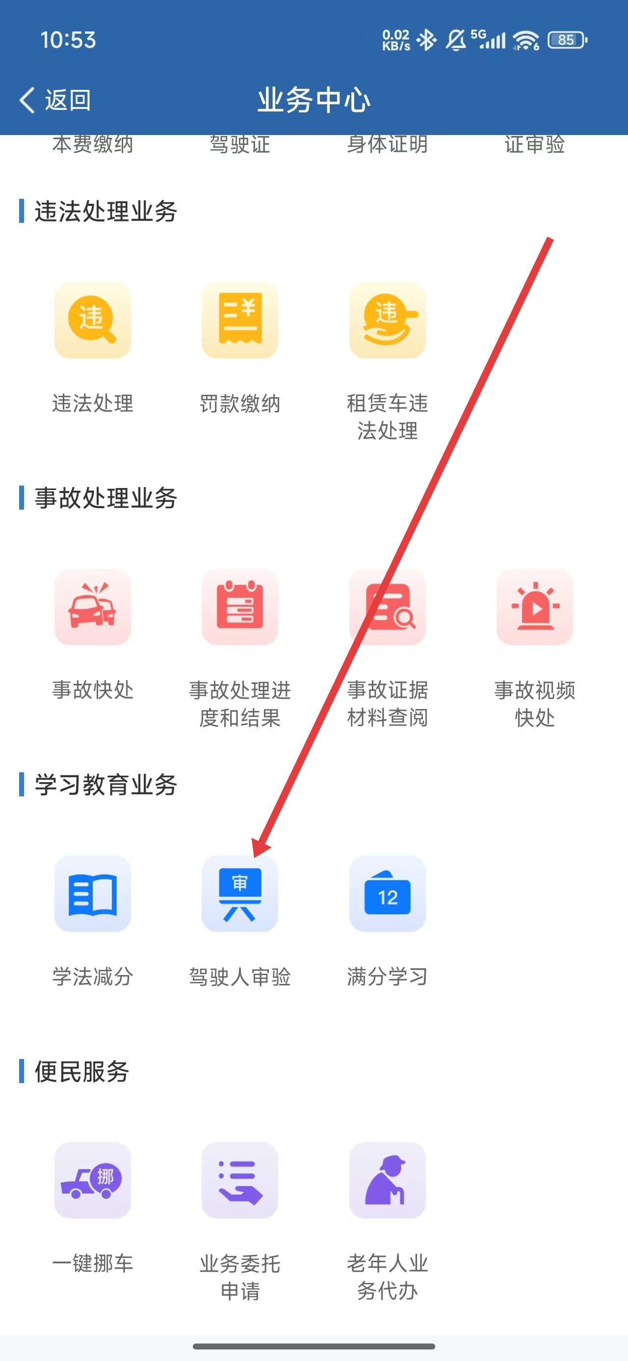 3、在進入到業(yè)務(wù)中心頁面內(nèi),可點擊駕駛?cè)藢忩炦x項。