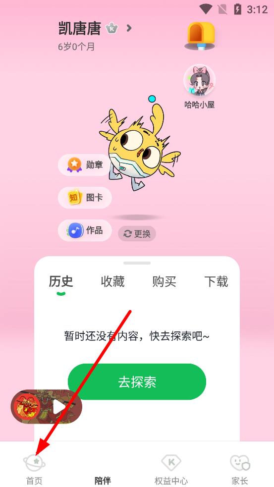 1、打開凱叔講故事app,點擊底部導(dǎo)航欄中的首頁選項。